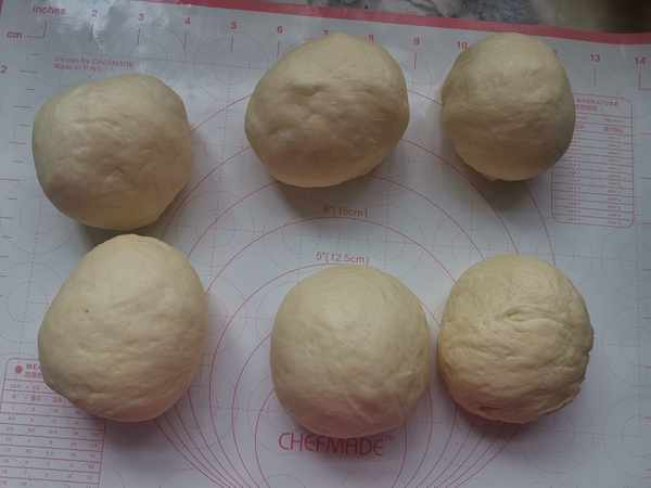 第三步:把麵團拿出排氣,分割成大小基本一致的小劑子,揉圓。