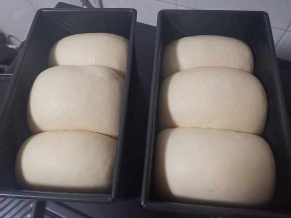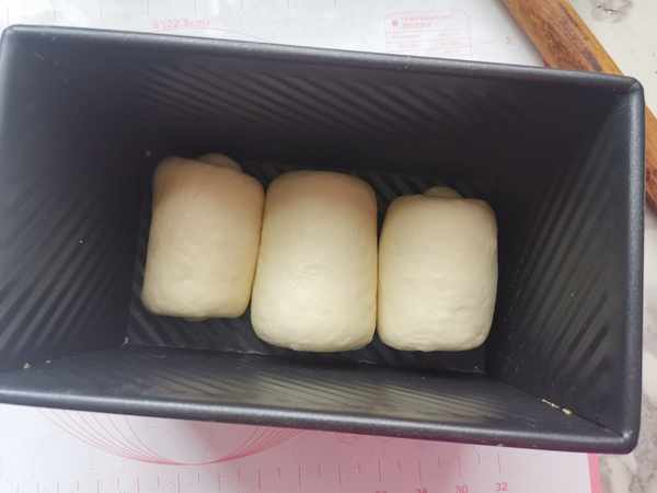 第八步:把吐司模具準備好,把做好的吐司坯子放入吐司盒,蓋上蓋子靜置發酵。