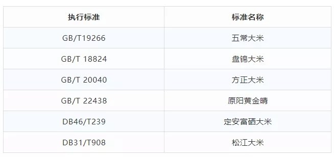 而如果想要挑選好的大米時,可以參照GB/T19266標準,這是五常大米的國家執行標準。另外一些其它的執行標準,具體如下圖: