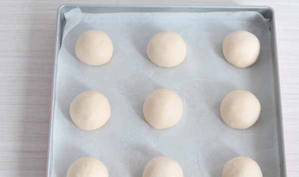 7均分成6份,滾圓,擺入烤盤。