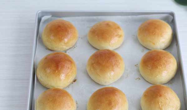 9面團的表面刷一層蛋黃液,放入預熱好的烤箱,上下火180度,中下層烘烤12分鐘左右。出爐後涼冷備用。