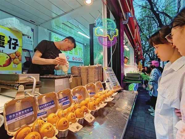 麻辣鮮香的“義井麻辣燙炸串”、外酥裡嫩的“臺灣車輪餅”、清爽可口的“海南清補涼”、奶香撲鼻的“爆漿雞蛋仔”……從夕陽西下到華燈璀璨,僅有251米長的老軍營東巷,迎接來一撥又一撥聞香而動的老饕,在結束瞭一天的忙碌後,愜意地坐下來享受“煙火氣”的撫慰和滋養。