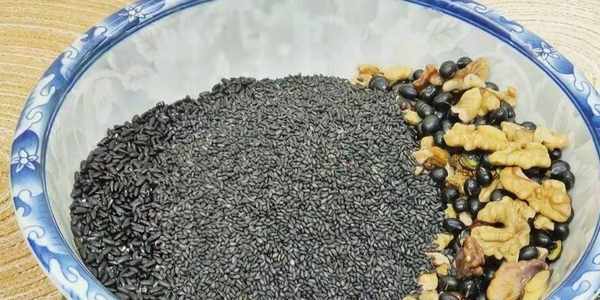 所需食材:核桃15顆,黑豆200克,黑米200克,黑芝麻100克,糯米粉150克。