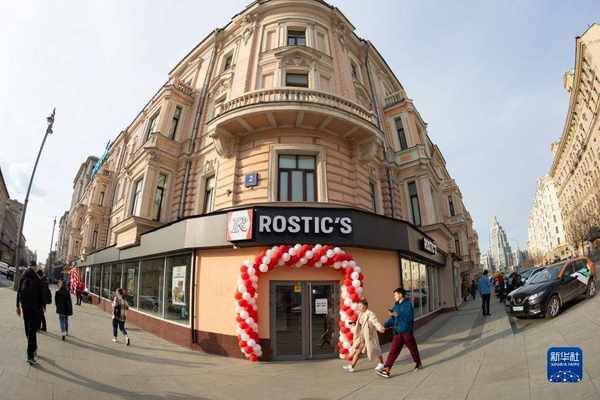 當日下午,俄羅斯首都莫斯科市中心一傢名為“羅斯蒂克”的餐廳正式開業。這傢餐廳曾經是美國快餐品牌肯德基在莫斯科的一傢旗艦店。在停業很長一段時間後,該餐廳當日開始改用新品牌名稱重新營業。