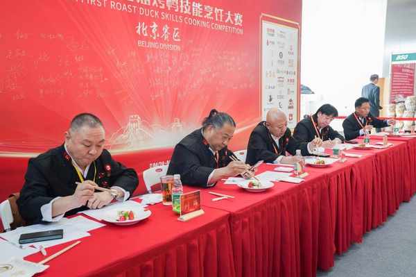專業賽事,大師把關,由中式烹調高級技師、北京便宜坊烤鴨集團有限公司總經理劉瑋;中式烹調高級技師、北京大董烤鴨店副總經理韓傑;中國資深級烹飪大師、全聚德集團烤鴨總監吳玉波;原鴨王烤鴨店總經理、中國烹飪協會烤鴨專業委員會輪值主席劉恩來;中國烹飪大師、中國烹飪協會烤鴨專業委員會輪值主席徐福林;中國烹飪協會烤鴨專業委員會副主席、北京四世同堂餐飲管理有限公司烤鴨總監馬學東;中國烹飪協會烤鴨專業委員會副主席、北京大鴨梨餐飲有限公司烤鴨總監姚磊;中國烹飪協會烤鴨專業委員會委員、北京優味兒鴨餐飲管理有限公司總經理崔志民組成的評委團,在對所有參賽代表隊出品作品進行逐一品嘗後給予瞭中肯點評。