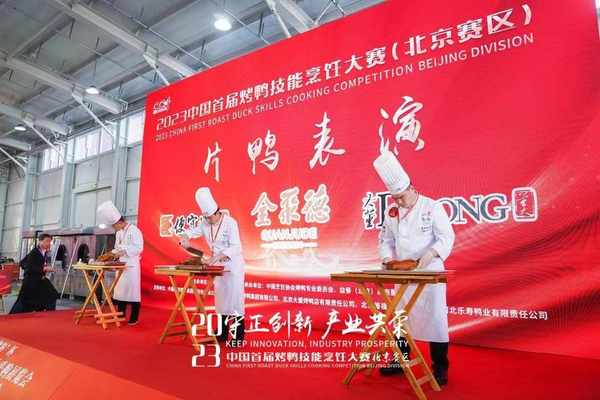 4月24-25日,北京首鋼產業園迎來瞭一群有夢想的烤鴨人,他們自全國各地齊聚首都北京,來參加由中國烹飪協會主辦,中國烹飪協會烤鴨專業委員會承辦的2023中國首屆烤鴨技能烹飪大賽。中國全聚德集團、北京便宜坊集團、北京大董餐飲集團、北京四世同堂餐飲集團、北京新世紀青年餐飲連鎖、北京大鴨梨餐飲連鎖、山西悅景餐飲連鎖、山東魁盛居餐飲連鎖等行業領軍企業紛紛派出代表隊,聯袂參賽角逐獎項。本屆大賽活動參與品牌規模、參賽選手數量均為行業比賽前列,其廣泛性、專業性也得到全行業廣泛認可。同時,本屆大賽也吸引到烤鴨產業鏈上下遊企業的關註,河北樂壽鴨業有限責任公司、北京順風飛揚物流中心、北京榮坦餐飲設備有限公司、安徽立全宏達食品有限責任公司、山東魯工廚房設備有限公司等產業龍頭企業也在賽會上帶來鴨胚、面餅、烤爐設備等相關產業產品,助力中國烤鴨產業共榮發展。