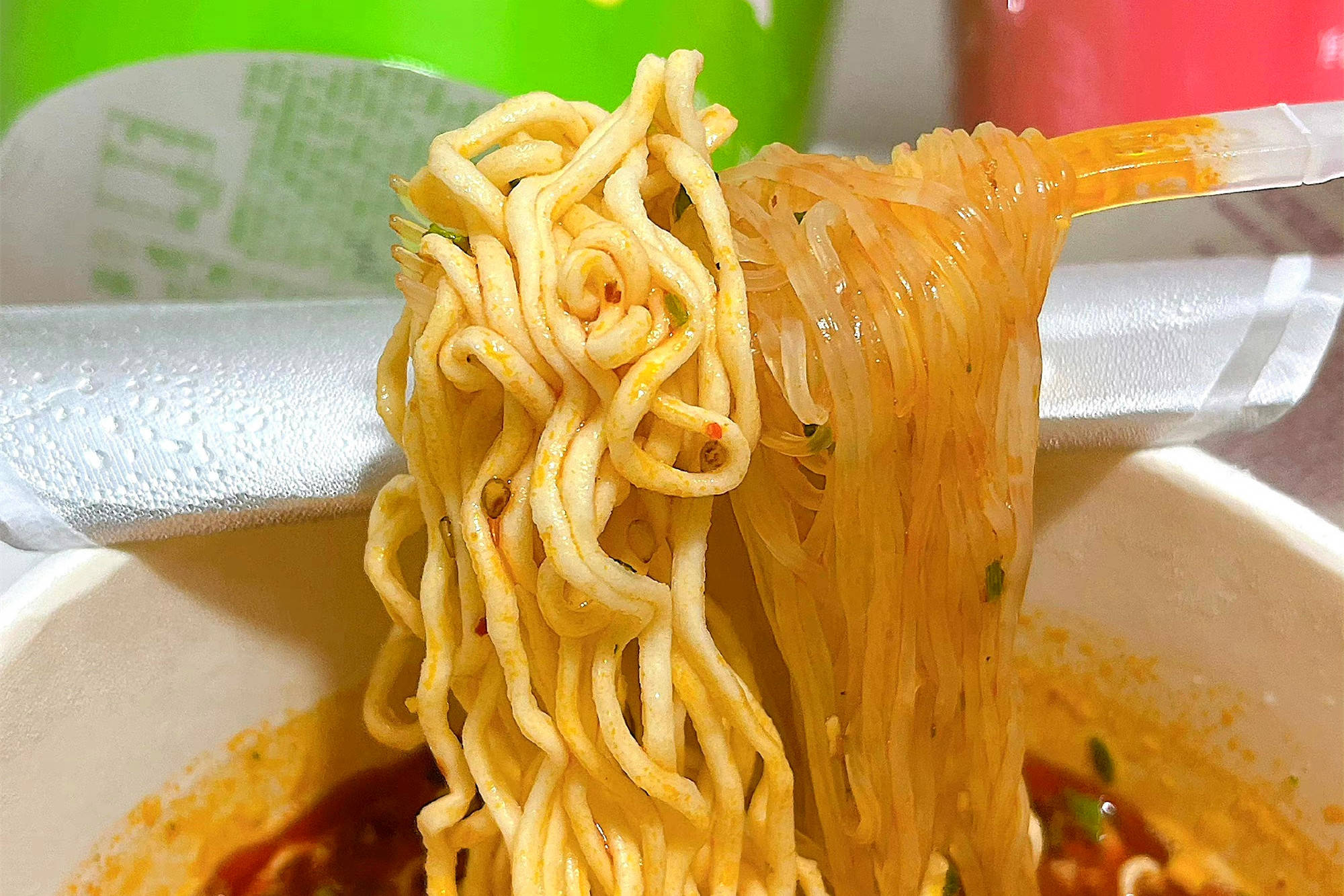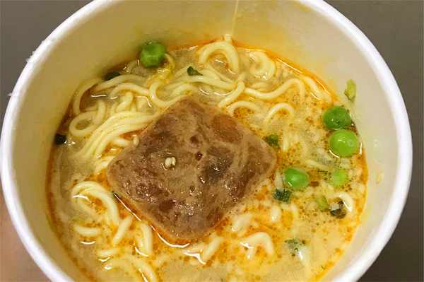 最最經典的日式豚骨拉面,一口把你帶到日式拉面店裡,一大片的叉燒肉,真的是把方便吃出瞭高級感、儀式感。辣牛肉湯面吃起來則是像在韓餐店喝辣白菜牛肉湯,裡面也是真的有辣白菜和牛肉片,搭配上爽口的面,越吃越過癮。原盅雞湯面裡不僅有枸杞,還有紅棗、山藥、雞肉,仿佛真的在喝剛剛燉出來的濃鬱雞湯,偏西式的羅宋湯面吃起來也很出色,酸酸辣辣的,還有一股香濃的奶味。