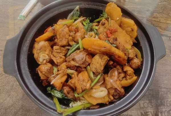 口感:雞公煲濃香滑嫩,味道也更加符合大眾口味,麻辣鮮香,口味多變,口感醇厚,百吃不厭,同時給人一種越吃越豐富的味覺刺激。小編最喜歡在快要吃完的時候,下入雞蛋面、生菜、炸豆腐等配料。這些配料會吸滿雞公煲的湯汁,好吃到流口水。