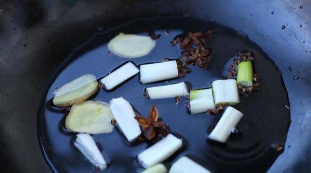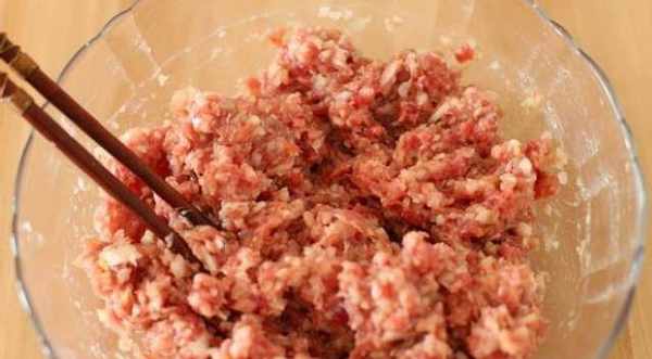 制作肉餡:(1)煮花椒水:鍋中加入1碗水,一把花椒,5-6個大料、蔥段、薑片,煮開後小火煮5分鐘關火。