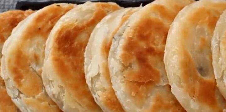 9、烙至底部定型時用鍋鏟翻面,小火慢烙,多翻幾次面,烙至兩面金黃酥脆即可。