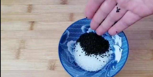 今天我們用一碗面粉來做個特別好吃的美食,我們先在鍋中加入300毫升清水,40克白糖。開大火慢煮,攪拌至白糖完全融化,煮沸騰以後加入200克普通面粉,用鏟子快速的攪拌均勻,然後關火,放一盤備用。接著我們來做糖餡,準備30克白糖,加入一把黑芝麻,一勺面粉,攪拌均勻。這樣我們的糖餡就做好。