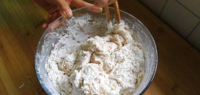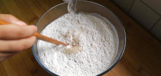 先將酵母化開,一邊倒一邊用筷子攪拌,