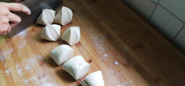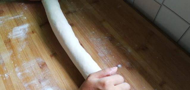 3,面揉光滑後搓成長條,下大小相等的劑子,一斤面大概下14個左右