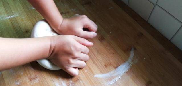 2,案板撒面粉,繼續揉面,將面揉光滑