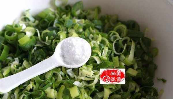 6、準備蔥花,切碎的蔥花加入適量的鹽,攪拌均勻備用。