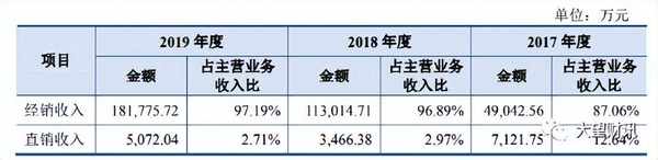 與此同時,經銷商數量的大幅增加使得經銷模式的收入比例也在大幅增加。2017年—2019年,國臺酒業經銷模式實現的白酒銷售收入占主營業務收入的比例從87.06%增至97.19%。而直銷模式實現的白酒銷售收入占主營業務收入的比例從12.64%降至2.71%。