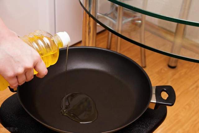 1、在不粘鍋中倒入適量的油,燒至七成熱(烘一下鍋感覺熱度就行)。