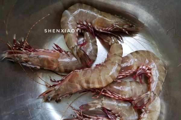 1.用清水把大蝦沖洗幹凈,然後用廚房剪刀剪去蝦嘴、蝦須和蝦腳。