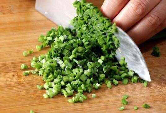 把韭菜的黃葉和爛葉子的部分去掉,洗幹凈。把韭菜切成末。