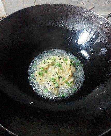 水量到餃子的三分之一處,蓋上鍋蓋,改小火,燜一會兒,至水收幹。若是現包的餃子,就適當減少水量。燜煮的時候不要著急用鍋鏟鏟或是筷子夾起來看,會破的。