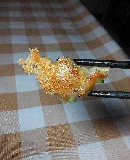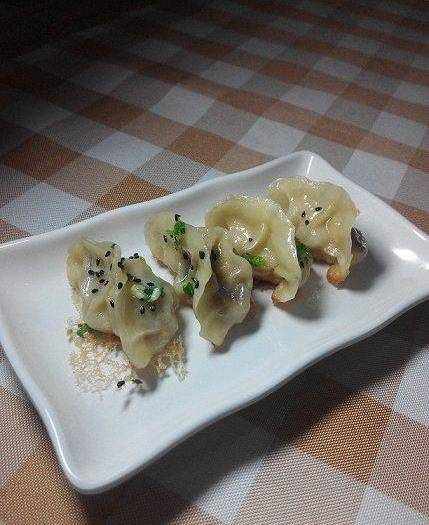 煎1,2分鐘後用筷子夾一個餃子看看,若餃子底部呈現出焦黃色就可以加水瞭。