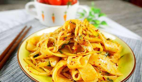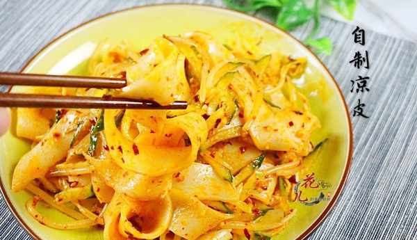 說起來,春暖花開之後,有種美食太饞人,香辣爽口的一小盤,放入黃瓜絲、綠豆芽、香芹段,調味汁來拌一拌,點上一勺油潑辣子,就是一道足以大快朵頤的佳肴,這就是涼皮。這道有些不起眼的美食,卻是很多人春夏時節最愛的晚餐。涼皮口感勁道又爽滑,不同於那些經典的傢常菜,這涼皮,就是吃上一周,也不覺得膩