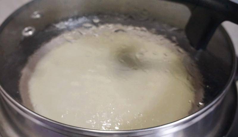 5、大鍋內燒開水,將倒入面漿的圓盤放置在開水上,蓋蓋子,中火蒸3分鐘。
