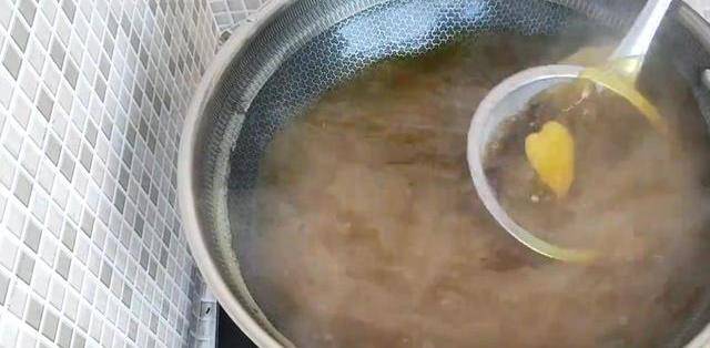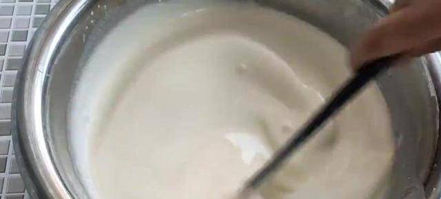 接下來將靜置好的面糊過濾一下,把裡面的雜質過濾出來。攪拌均勻後就可以開始蒸涼皮瞭。篦子刷油備用,舀一勺面糊倒入涼皮鍋中,容器裡的面糊多少,決定瞭蒸出來涼皮的厚度,蒸涼皮必須用大鍋水大火蒸,這樣涼皮才不會開裂,也不會碎,蓋上鍋蓋蒸兩分鐘。