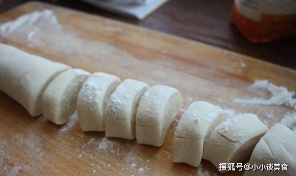 案板上撒一層幹面粉,發酵好的面團放在案板上,繼續揉幾分鐘,蓋上佈再發酵10分鐘,發酵後的面團揉成長條,切將面團分成大小相等的條子,然後揉成面條餃子饅頭胚。