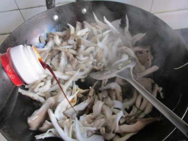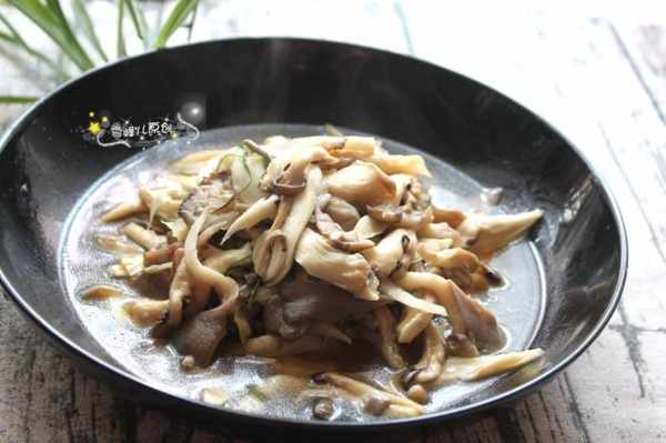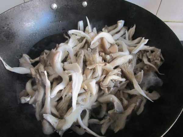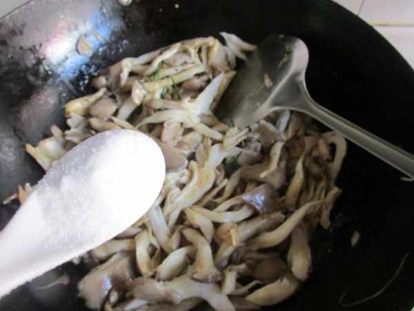 所用資料:平菇半斤,葱絲,薑絲,鹽適量,花生油半勺。