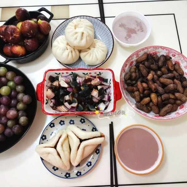 這一餐有洋葱肉包,紅糖包,洋葱皮蛋,還有養生的紅豆小米糊,配上這個季節最受歡迎的水果無花果和葡萄,好吃又吃的舒服,關鍵是不用早起特簡單。下麵就分享一下做法,提前準備,早餐輕鬆搞定。