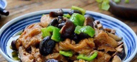 1.將幹香菇洗凈,事先用溫水浸泡。將青椒切成小塊備用。油面筋用刀切開備用。取出香菇碎,切成小塊。