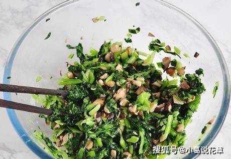 2、青菜焯水後及時過冷水。一冷一暖會讓顏色更漂亮。調餡的時候,裡面加的食用油是少不瞭的,可以封住食材中的水分。太多變得粘稠;
