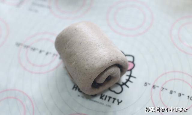 4.發酵好的面團分成兩份,卷起來,蓋上聚乙烯薄膜,靜置10-15分鐘。