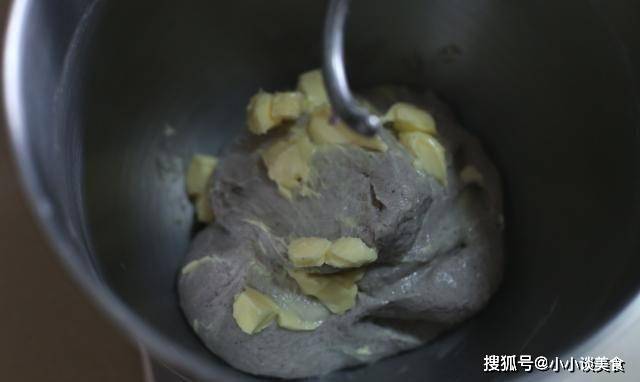 1.將食譜中除黃油以外的所有材料混合在一起。我發現用食品加工機搟面團更容易。當面團形成一個球並有一點面筋時,加入軟化的黃油