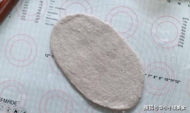 5.取松散的面團,壓扁,搟成橢圓形