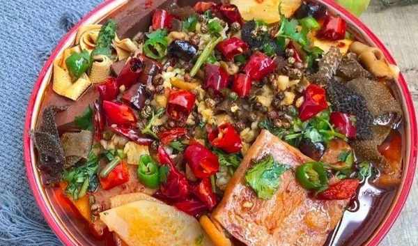 花椒、蒜末、薑片、青椒片、幹辣椒片、鴨血、羽三角、午餐肉、青筍、土豆、豆腐、鴨腸、豆腐花等你喜歡的蔬菜