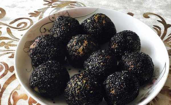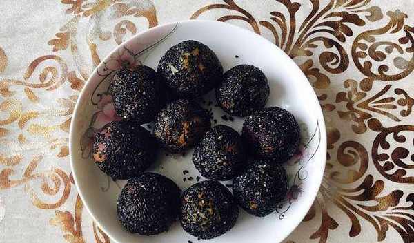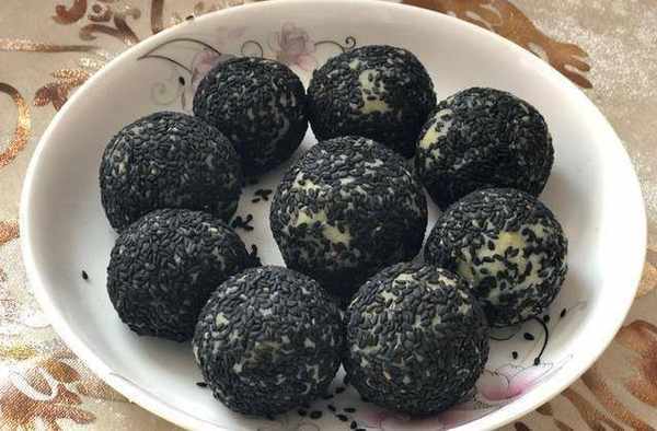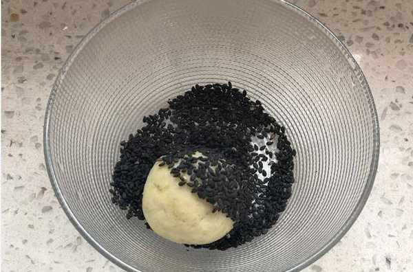 並滾上一層黑芝麻(我用的是黑色芝麻沒白色的好看,因為傢裡沒有瞭)