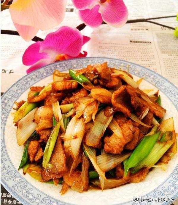 1、豬裡脊肉,用大斜刀切,不加淀粉,保持原汁原味。將大蔥切成大斜片,隻取白色