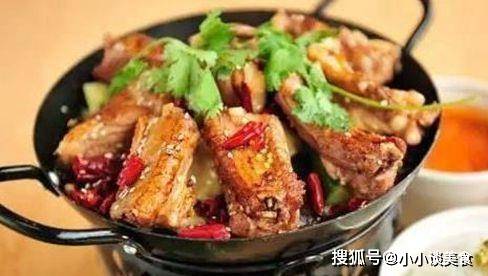 2、排骨炸好後,倒入三碗水,加入小蔥和薑,將炸好的排骨煮至酥脆。