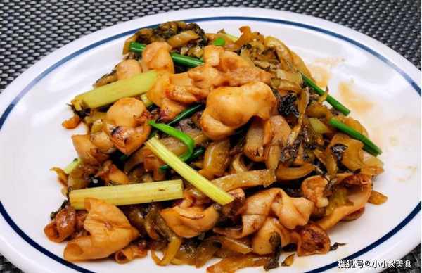 材料:豬大腸、酸菜、大腸、酸菜、薑片、蒜片、幹辣椒