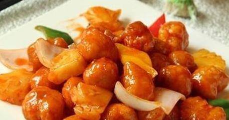 配料:豬裡脊肉500克、菠蘿150克、辣椒粉、蔥、薑、蛋清、鹽、胡椒粉、淀粉、番茄醬、米醋、白砂糖