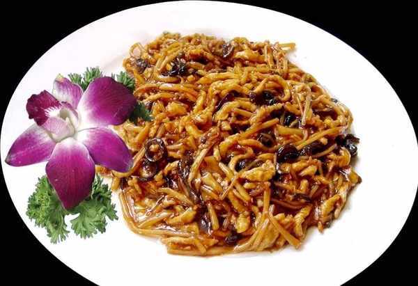 在天津傢常菜菜譜中,木須肉便是一道深受當地人喜愛的傢常菜。木須肉原名木樨肉,以豬肉片與雞蛋、木耳等混炒而成,因炒雞蛋色黃而碎,類似木樨而得名。木須肉制作方便,原料隨手可得,就算是做菜新手小白都能輕松搞定。這道簡單的傢常小炒菜,口味鮮美,葷素蛋齊全,營養很均衡,色彩搭配得也很漂亮,受到許多人喜愛