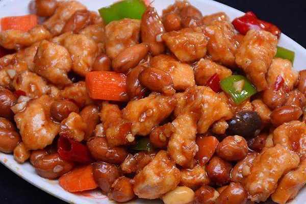 宮保雞丁的起源與魯菜中的醬爆雞丁,和貴州菜的胡辣子雞丁有關,後被清朝山東巡撫、四川總督丁寶楨改良發揚,形成瞭一道新菜式宮保雞丁,並流傳至今。宮保雞丁選用雞肉為主料,佐以花生米、黃瓜、辣椒等輔料烹制而成,口感紅而不辣、辣而不猛、香辣味濃、肉質滑脆。宮保雞丁在魯菜、川菜、貴州菜中都有收錄,原料、做法有差別。