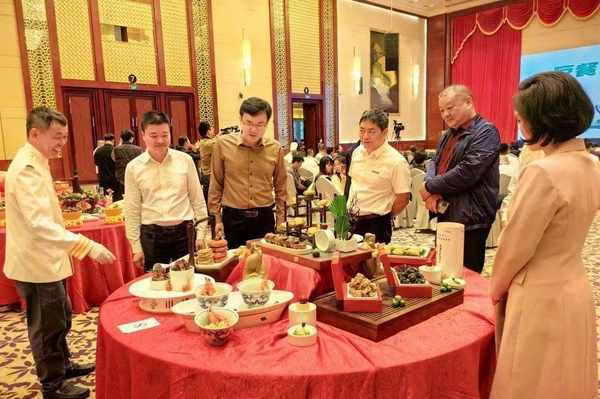 團體賽以文化宴為主題,參賽團隊紛紛拿出看傢本領,現場為觀眾與評委展示瞭湄洲島媽祖宴、少林功夫宴、紅團宴、中秋團圓宴等精彩紛呈的視覺盛宴。