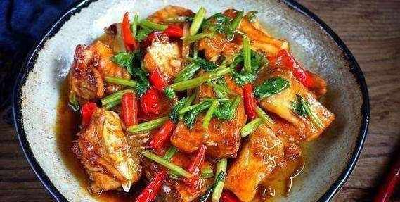 4、鍋內餘油爆香大蒜,倒入魚塊、啤酒、黑醬油和糖,中火燉至湯汁濃稠,轉大火收汁。