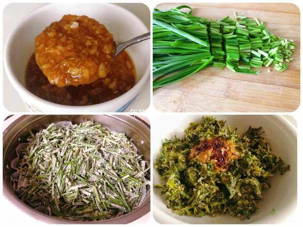(4)食材都備好瞭開始制作,茴香豬肉末倒一起,加料酒,胡椒粉,鹽,雞精,生抽,蠔油,老抽順著一個方向攪拌