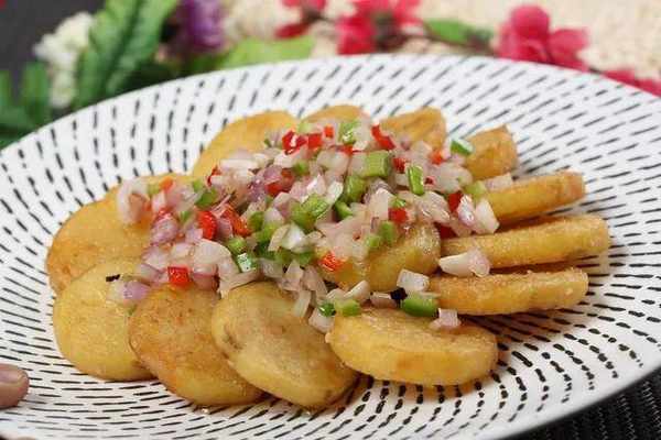 (7)下面還有最重要的一步,抓一把蔥花淋上熱油激發出蔥香味,繼續攪混合
