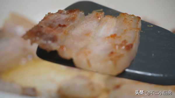 5、煸炒到五花肉表面有微微的膠皮狀,像這個樣子就可以瞭。我們可以看到煸炒瞭很多油脂出來,把這個油脂倒出來,用來炒菜非常的香。