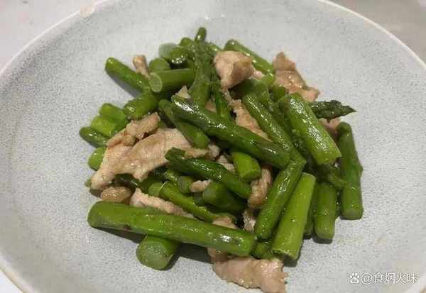 很快,這樣子一份簡單美味的蘆筍炒瘦肉就完成。這樣做出來的蘆筍甘甜鮮脆而且味道特別的好,夾起來一塊放入嘴裡,滿是春天的味道特別不錯。瘦肉因為有稍微醃一下,所以炒出來的瘦肉口感也會鮮嫩滑好,都不會柴口。